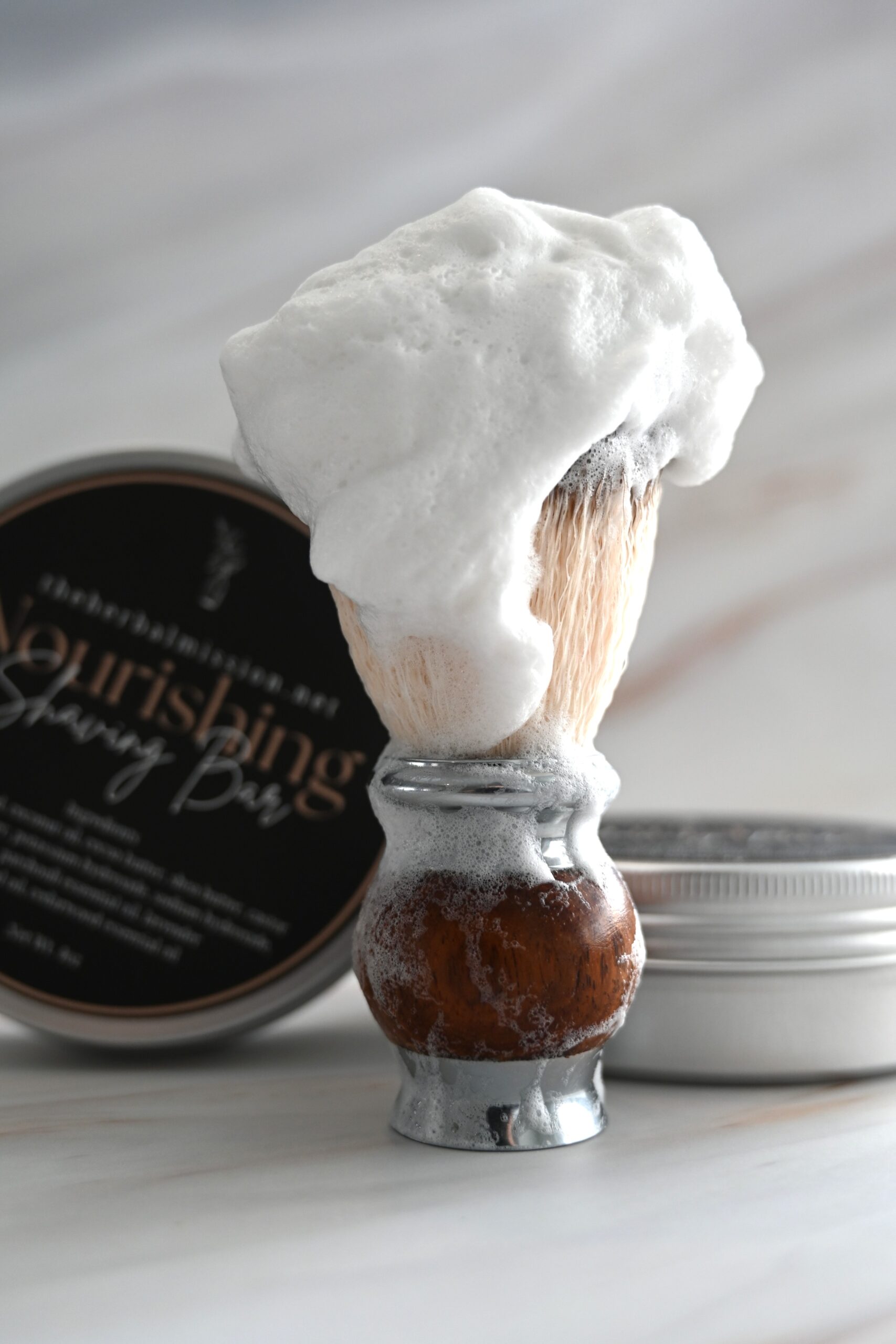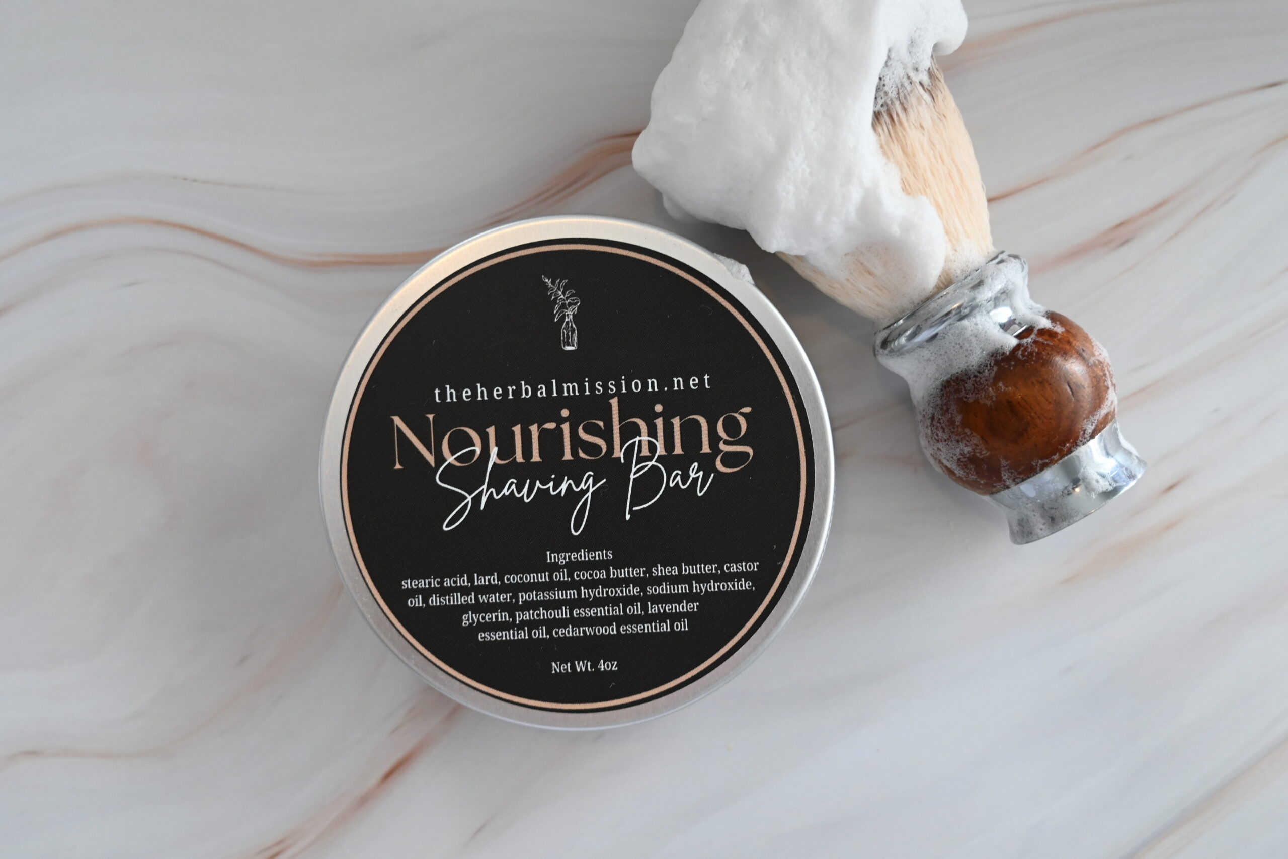 A truly luxurious, all-natural shaving bar crafted to transform your daily shave into a nourishing ritual. This rich bar creates a dense, creamy lather with an exceptional glide, allowing the razor to move smoothly across the skin while helping to minimize irritation and dryness. Formulated for all skin types and suitable for both men and women, it provides lasting hydration and comfort with every use. Skin is left feeling soft, smooth, and deeply moisturized. This shaving bar is best used with a shaving brush to get a rich, thick lather but can be used by lathering with your hands as well. In fact, this bar can be used as a body wash if your skin is needing extra nourishment. Lightly scented with an earthy blend of patchouli, cedarwood, and lavender for a calming, balanced finish.